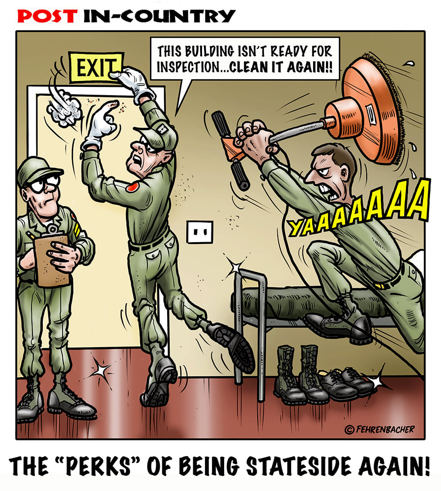 Phil enlisted in the Army in 1965 where you served for years in Vietnam.  He became a graphic designer and has worked for the state of Oregon for 26 years.  He retired in 2003 and started the Cartoon "In-Country".  The cartoons reflect his experiences during his tour of duty in South Vietnam.